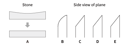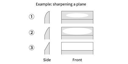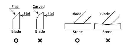 These coarser stones deform more quickly than finer stones of 30 microns or below (500 or above), and are unsuitable for creating flat surfaces as you sharpen the blade. - ② Correct and flatten the blade (see C).