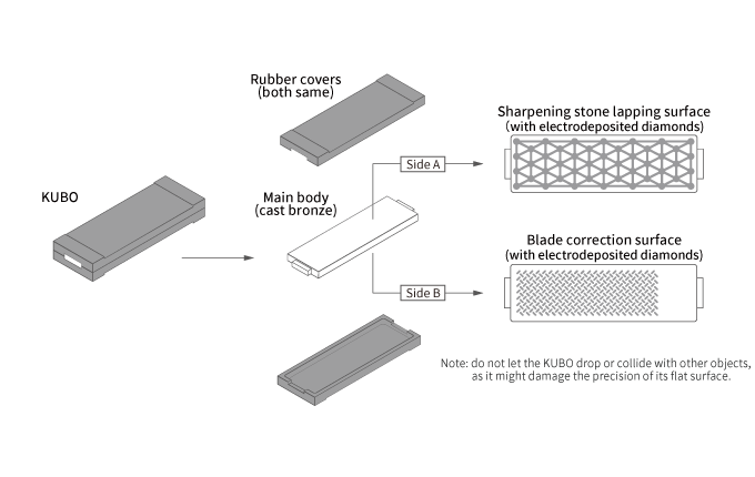 ■ Place the KUBO somewhere stable, with the blade correction face (side B) on top.
