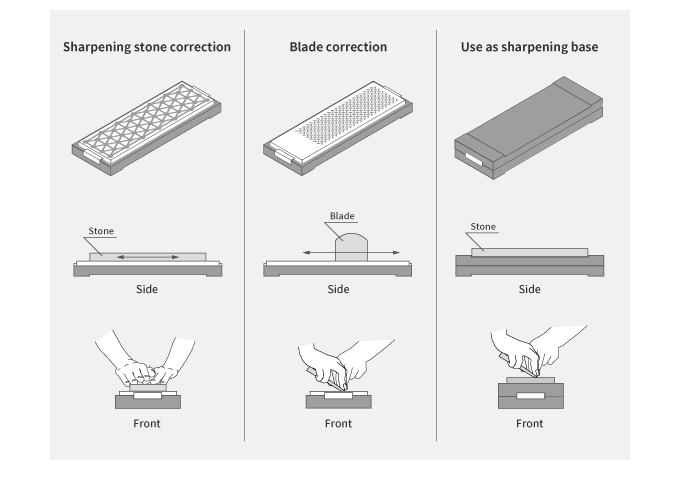 That is why the blade correction face (side B) should only ever be used for correcting the flatness of blades. - Note 3: Take care not to scratch the blade correction face (side B) with the edges of blades or anything similar, as there is a risk of the diamond surface being gouged.