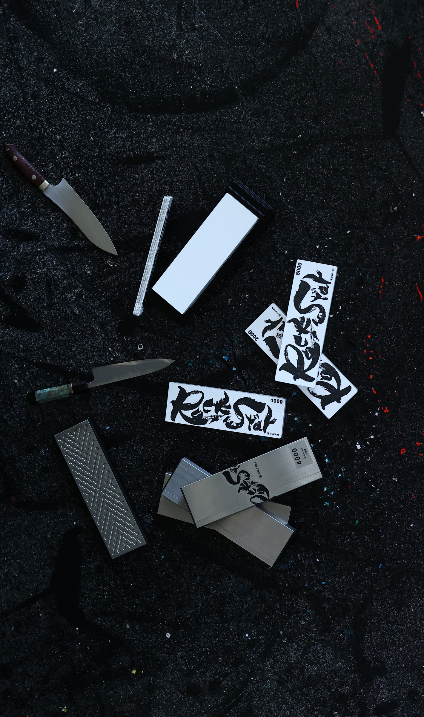 RockStarシリーズは、厚み10mmの無垢の砥石でスタンダードモデル(ケース無し)とステンレス製収納ケース付きモデルがございます。